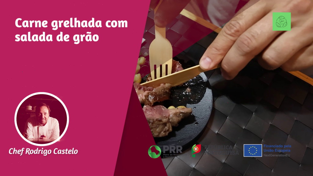 Carne grelhada com salada de grão